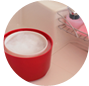 専用のバスケットと処理容器は、台所用中性洗剤で浸け置き可能。簡単なお手入れで、常に清潔さを保てる。
